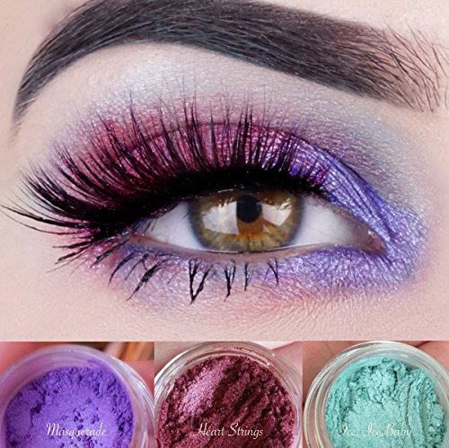 - This look includes ICE, ICE BABY dusted as a base in crease. A bit on the bottom center lash line. Add MASQUERADE to the inner, upper lid top and bottom. HEART STRINGS on the outer lid top and bottom. Blend colors into each other with a fluffy brush using a light hand. Voila!