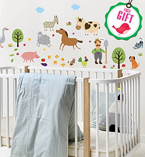 Farm Animal Barnyard Wall Decals for Kids - Farming Baby Room Children Stickers for Toddlers Bedroom [>40 art playroom clings] + Free BIRD GIFT!