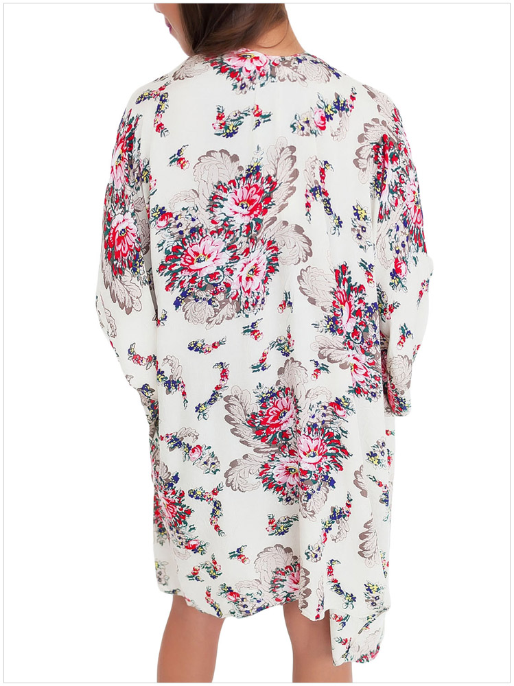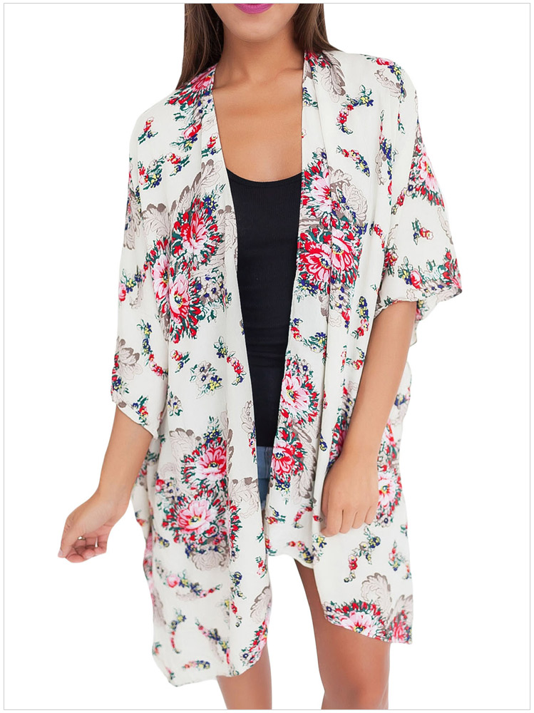 シンプルなジーンズにTシャツスタイルに羽織るだけでぱっと華やかに。