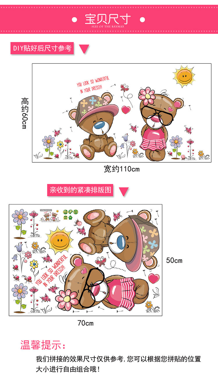 客厅浪漫温馨卧室房间寝室宿舍墙壁背景装饰墙纸贴画可移除墙贴纸