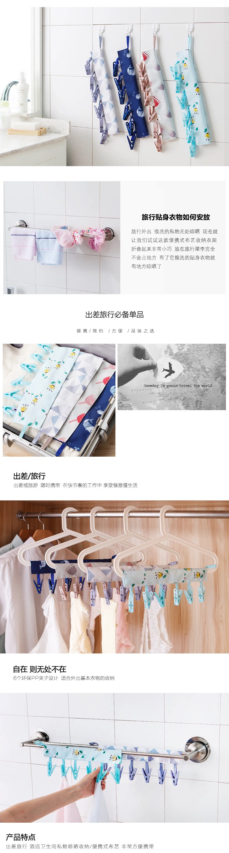 名称:便携式布艺衣架尺寸:长34宽10cm材质:涤纶 塑料颜色:蓝色 西瓜红 玫红 黑色Name: Portable cloth hangerSize: Long 34 wide 10cmMaterial: polyester plasticColor: blue watermelon red rose red black
