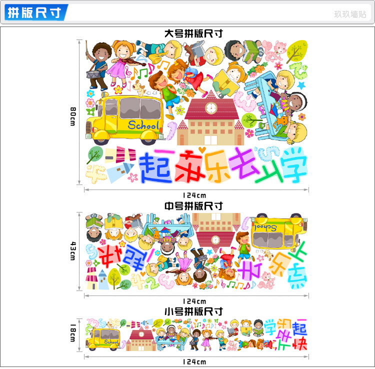 上幼儿园小学校墙贴卡通小朋友校车娃娃家一起上学音乐读书贴纸画