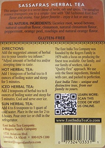 -. Title : East India Tea - Sassafras Herbal Tea - 3 Oz Loose Tea - Old Fashioned Root Beer Flavor