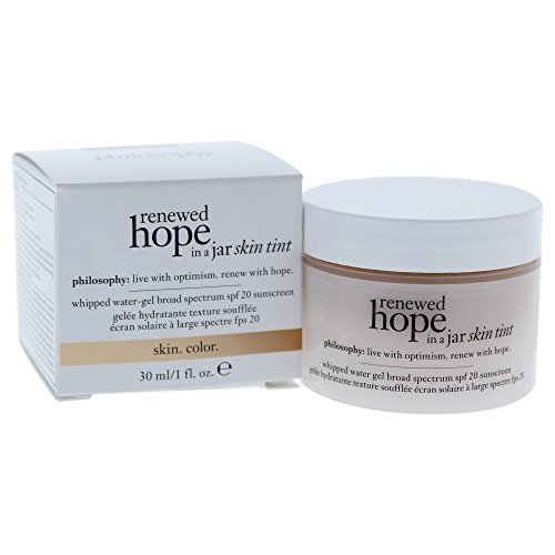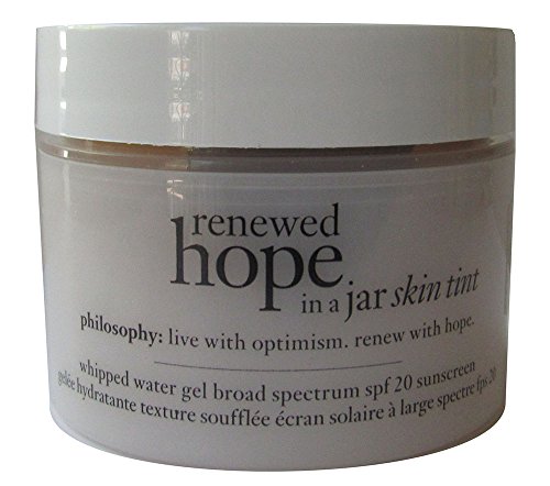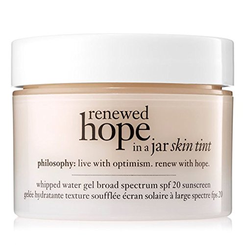 Studio : Philosophy Publisher : Philosophy Binding : Misc. Product Description Renewed hope in a jar is blurring the lines between makeup and skin care with new skin tint. powered by nature - H2O and Wu Zhu Yu fruit extract, this whipped water-gel formula offers the all-day hydration and glow benefits of our breakthrough renewed hope formula, plus buildable coverage of a foundation- for flawless-looking skin with a healthy, shine-free glow. each shade has been masterfully mixed to flex to a wide range of skin tones. - Clinically proven - 93% of women showed an instant increase in moisture* - Medium buildable coverage, broadspectrum SPF 20 - Contains wu zhu yu fruit extract for a healthy-looking, shine-free glow Net Weight: 30 ml / 1 oz. 0