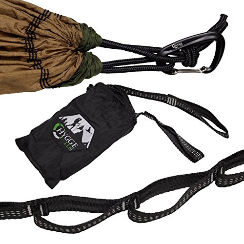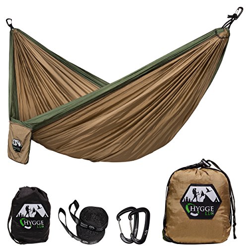 Double Hammock made of Premium Quality 210T Parachute Nylon - Lightweight Kit Includes 7075 Series Aluminum Wire Carabiners, Adjustable Triple Stitched Straps with Carrying Case, exclusively by Hygge