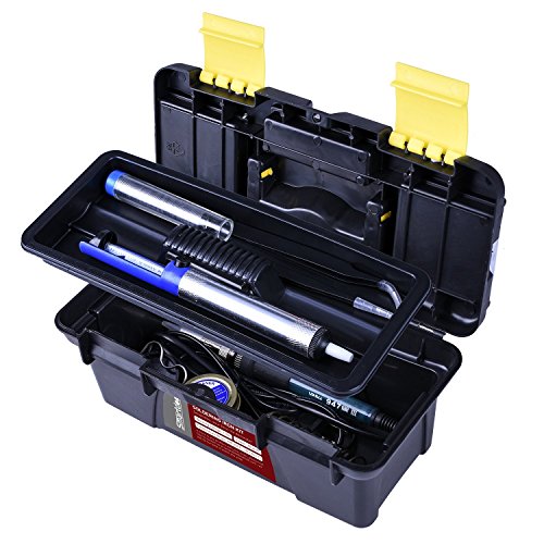 - 11-in-1 SOLDERING IRON KIT: The package comes with soldering iron, de-soldering pump, solder wick, solder wire, two stands with cleaning sponges, 5 solder tips, 2 anti-static tweezers ,assist tools and a toolbox to meet all your demand in soldering project.