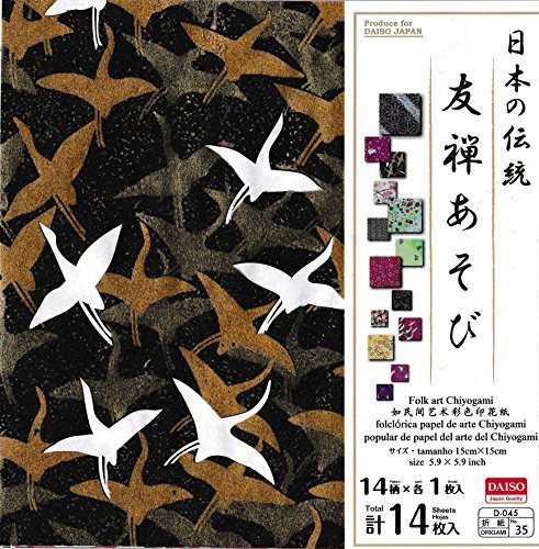 -. Title : Japanese Heritage "Yuzen Play" Pattern Paper with Colored Figures Origami