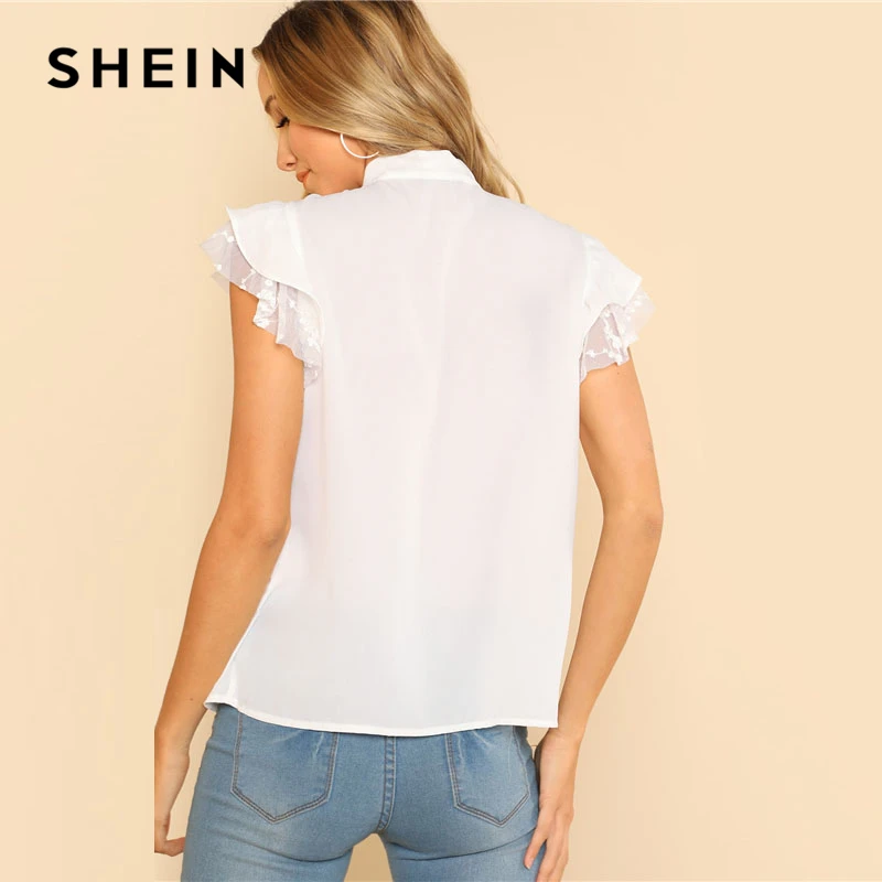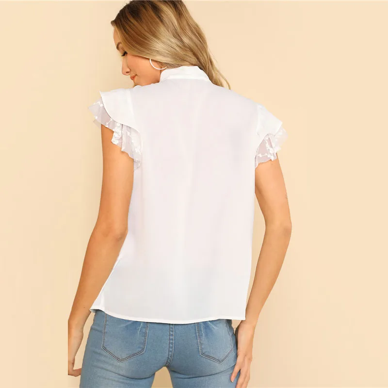 Decoration: Ruffle, Embroidery, Contrast Mesh, Tiered Layer, Tie Neck