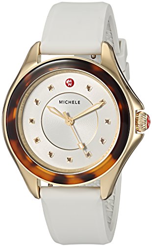 -. Title : Michele Womens The Cape Gold-Plated Stainless Steel White Silicone Strap