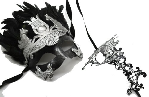 -. Title : Men's Silver Feather Hercules & Metal Phantom - His & Hers Masquerade Couples Venetian Design Masks 2 Piece Colored Set - Perfect Couple Mardi Gras Majestic Party Halloween Ball Prom