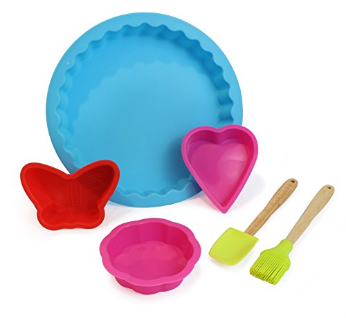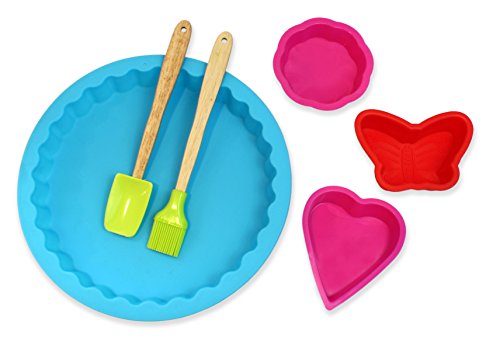 - Real cooking and baking starter set. Set Includes food grade silicone decorative baking pan mold, butterfly, heart, and scallop cake mold, spatula and pastry brush.
