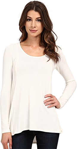 Sweater knit pullover with subtle high-low hem