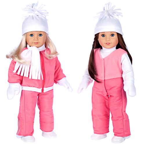 - In this complete 7 piece snowsuit your doll will be ready for a fun day with snow. It is perfect for skiing making a snowman or a snowball fight.