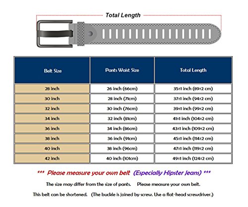 This belt is made of Real Leather. Leather was imported from Italy. And, it was made in Korea. Some belts are made of leather powder. The belt of leather powder is very cheap. To the untrained eye, the products look remarkably similar. But there is a great gap between the qualities of the two. Don't be fooled by the bait advertising. And Check the cross section, please. (Check the last 3 pictures on this webpage). We sell 100% Real Solid Leather belt. The size may differ from the size of your pants(especially hipster jeans). Please measure your own belt. We can punch additional holes, if you want. (only round holes). This belts can be shortened. The buckle is joined by screw. (Use a flat-head screwdriver). Pierce a leather with awl. And enlarge a hole with sharp scissors. (Spin one side of scissors in a hole)