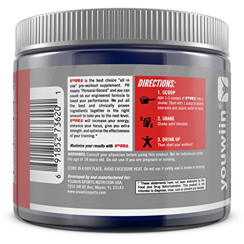 -. Title : Youwiin Sports Nutrition PR1 Pre Workout Performance Booster (Blue Razz Flavor) - Complete Nutritional Bodybuilding Supplement with Creatine, Amino Acids, Beta Alanine - 30 Servings