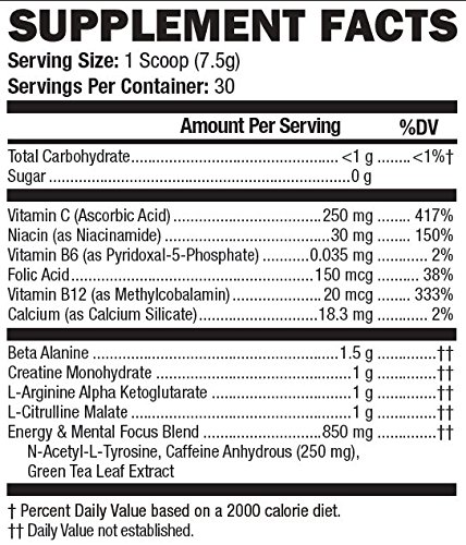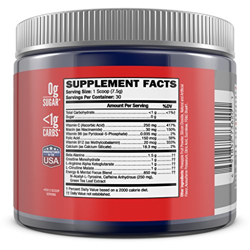-. Feature : RELENTLESS ENDURANCE - Increase your natural energy levels and maximize your performance with a muscle accelerator that drives you to work out harder and longer thanks to enhanced endurance that last from start to finish. NO JITTERS. NO CRASH. NO SIDE EFFECTS. / IMPROVED RECOVERY TIMES - Smash your CrossFit WODs and weightlifting gains by reducing time between sets to reach goals faster and set plateaus higher thanks to muscle-building creatine and essential amino acids. / BUILD CORE STRENGTH & TONED ABS - Create leaner, more defined muscle groups with powerful ingredients that help increase your performance to you can shred fat, sculpt muscle and develop ripped abs. / ADVANCED FORMULA - Made in the USA, this pre-workout booster is carefully crafted in a GMP/FDA certified facility free of sugars, binders and fillers. Only trusted, premium vitamins and minerals designed to increase your gains. / GUARANTEED SATISFACTION - We're so confident that our formula will exceed your expectations that we back each sale with a 30-day money back guarantee for satisfaction; no questions asked.