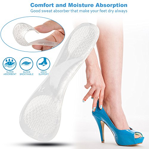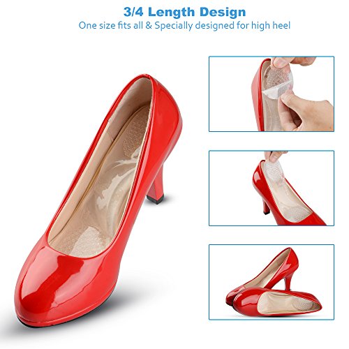 Soumit Massage Gel Insoles for Women Provide High Heel Pain Relief, 3/4 Length Comfortable Velvety Heel Inserts Pads with Transverse Arch Support for Make Your High Heels More Comfortable Transparent