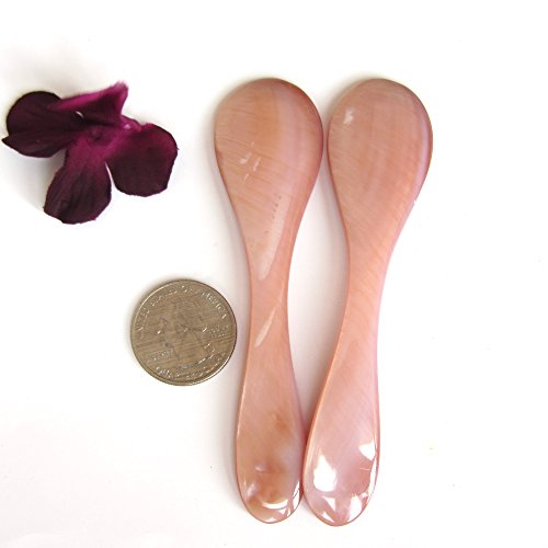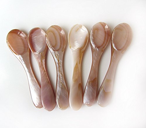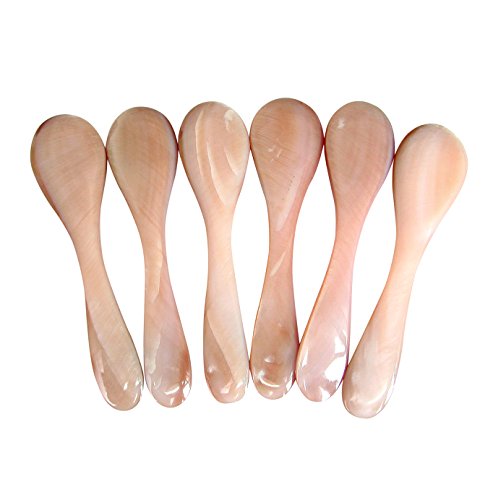 MARYCRAFTS SET OF 6 PINK MOTHER OF PEARL MOP CAVIAR SPOONS W ROUND HANDLE