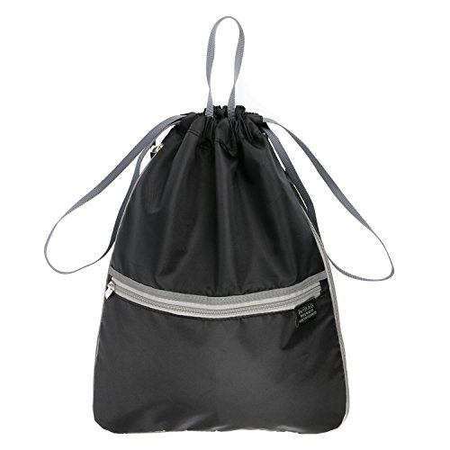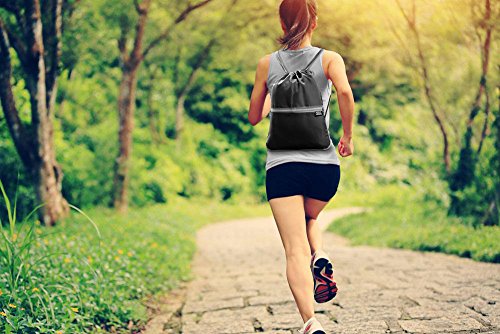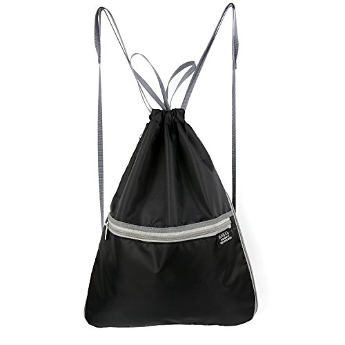 Drawstring Backpack with Outside-Inside-Side Pockets, Drawstring Gym Bag Sackpack, Nylon Training Gymsack Travel Daypack Sports Bags, Black
