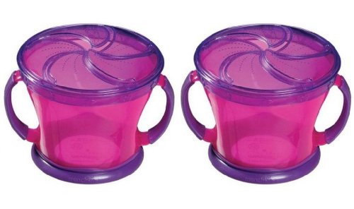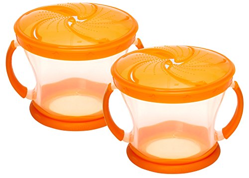 -. Feature : Domed container holds 9 oz. of dry snacks / Protective bottom keeps tabletops scratch-free / A place to write child's name on the bottom / Contains 2 Snack-Catchers