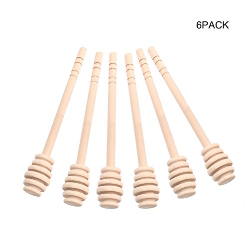 VOYEE Wood Honey Dipper Stick Server for Honey Jar Dispense Drizzle Honey 6 Inch Pack of 6