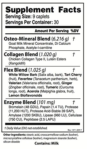 Studio : Mt. Capra Publisher : Mt. Capra Binding : Health and Beauty Product Description CapraFlex is a complete bone and joint formula. It contains naturally occurring compounds such as Glucosamine and Chondroitin from type II chicken collagen as well as whole foods, herbs and enzymes synergistically blended to promote bone and joint wellness and vitality. The Type II Chicken Collagen used in CapraFlex comes from chickens free of growth hormones, antibiotics, pesticides and insecticides. This form of collagen is a whole food concentrate that has no known side effects and provides maximum absorption. Type II Collagen is the principle structural protein in cartilage which provides strength, flexibility and joint support. According to recent studies at Harvard University Medical School, Type II Collagen derived from Chicken Cartilage works in synchronicity with the immune system. CapraFlex also contains fermented goat milk whey. This type of whey has been used for decades to support bone and joint wellness. World-renowned nutritionist, Dr. Bernard Jensen, used goat milk whey as one of the foods of choice for vibrant joints. This highly concentrated whole food contains a broad array of naturally occurring minerals (including Potassium, Magnesium, and Calcium) in ratios received by the body with ease. 0