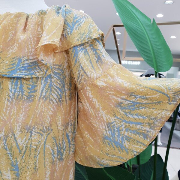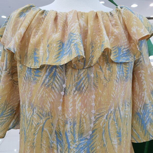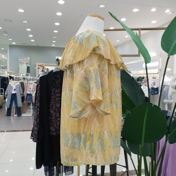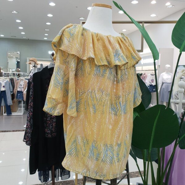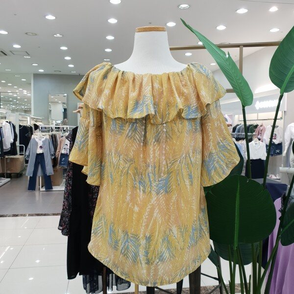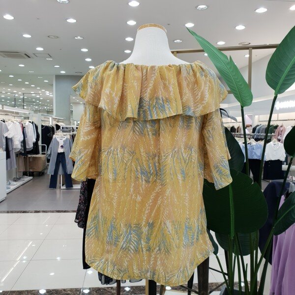 케이프타입 어깨 셔링이 예쁜 블라우스 입니다~ 패턴 프린팅과 목나인이 시원스러 보이는 상품입니다~