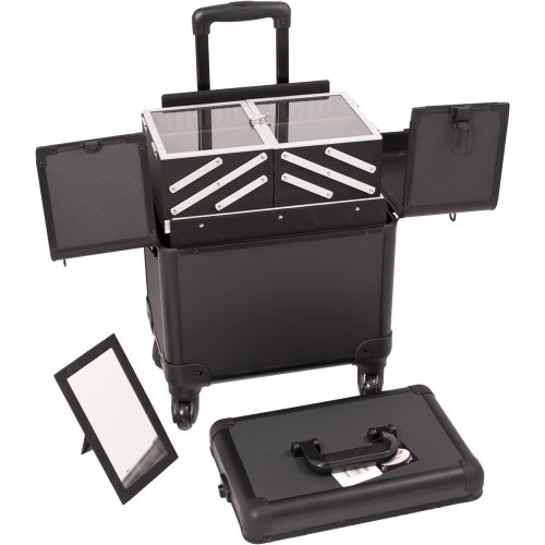 - Bottom Case: Adjustable dividers, 3 aluminum drawers, easy-slide trays, large storage pouch, mirror, lid, lock and keys