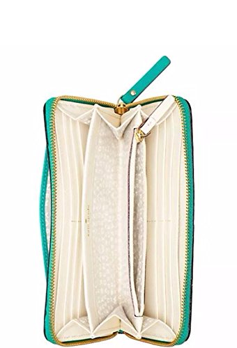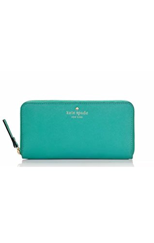 -. Brand : kate spade new york -. Color : Dusty emerald -. Department : womens -. EAN : 0098689755007 -. Feature : zip around continental wallet 12 credit card slots, 2 billfolds, zipper change pocket and exterior slide pocket / Material: leather / Measurements: 4''h x 7.6''w x 0.8''w / 14-karat light gold plated hardware custom woven bookstripe on poly twill lining iniside the wallet -. PackageQuantity : 1 -. ProductGroup : Shoes -. ProductTypeName : HANDBAG -. Size : large -. Title : Kate Spade Cobble Hill Lacey Wallet Emerald Green -. UPC : 098689755007 Color: Dusty Emerald Gold tone hardware leather with matching leather trim Kate Spade signature logo in the front 1 open length compartment on the back Inside 12 credit card slots, 2 full long compartments 1 zip coin compartment in the middle Strip fabric lining Measures approximately 8 (L)'' x 4 1/4 (H)'' Genuine leather