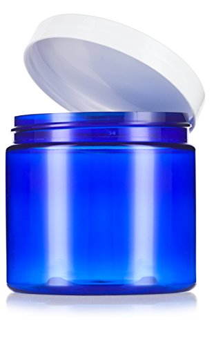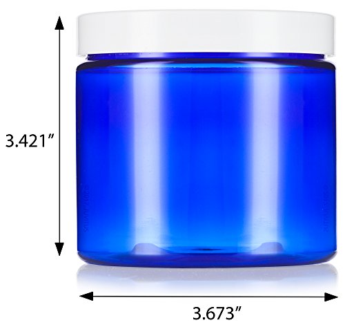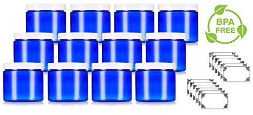 Cobalt Blue Large 16 oz PET Plastic (BPA Free) Refillable Jar with White Lids - (12 pack) + Labels