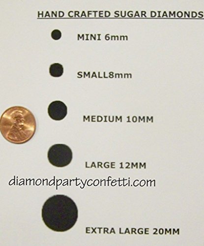 Studio : Unbranded Publisher : Unbranded Product Description HANDCRAFTED EDIBLE SUGAR DIAMONDS 6MM (MINI)PACK OF 38AVAILABLE IN 15 COLORS! MADE IN THE USA Beautiful, realistic cake jewels that are completely edible.Our handcrafted sugar diamonds are created by a high skilled sugar artist. They resemble real diamonds with their fully faceted tops and pointed bottoms. A stunning addition to cakes, cupcakes or cookies. This is the mini size measuring 6mm (approx 3.5/16 diameter, approx the size of a 2/3 ct diamond). Please refer to sizing chart in last photo for details. Several other sizes are available for purchase in our store. Made from isomalt, an excellent tasting sugar-free sweetener made from sucrose. Available Colors:ClearSoft PinkCotton Candy Pink Hot Pink/FuchsiaAqua BlueBright Teal Sapphire LavenderPurple Red Apple GreenEmerald/ Christmas GreenYellowOrange Black OnyxAssorted Wedding Cakes/Cupcakes: Place diamonds around any wedding cake design to add sparkle. Accent edible flowers (place around flowers or place in the flower center) Form a border of diamonds as shown in the picture. Sprinkle on cupcakes for a beautiful finishing touch.