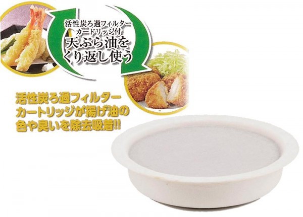 酸化物も取り除き油を再利用する、ろ過フィルター付オイルポットです。 |