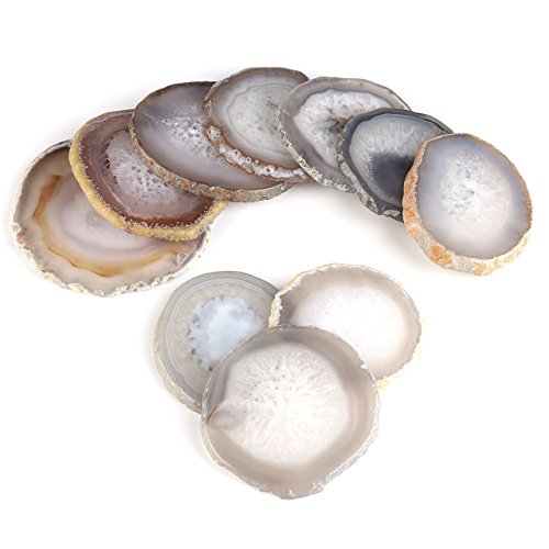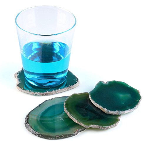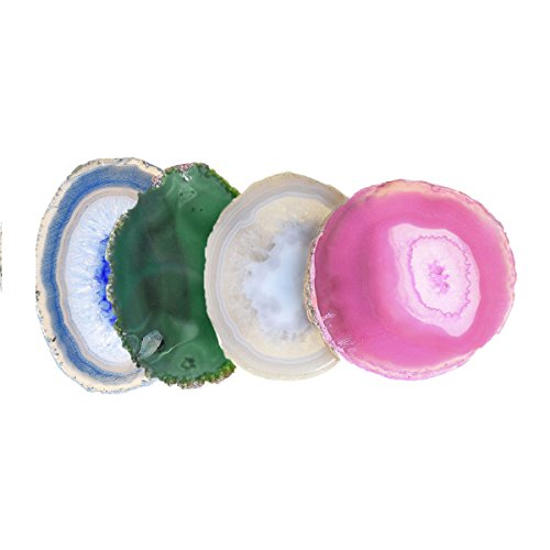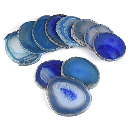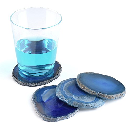 -. Title : QGEM Set of 4 Natural Agate Slices Dyed Blue,Beverage Coasters Cup Mat,Irregular Healing Crystals Collection Home Decoration, Drink Gift 2.95-3.15 Inches