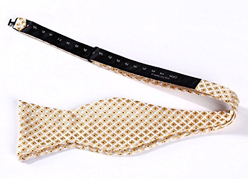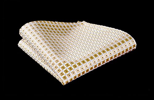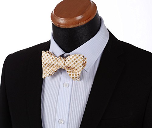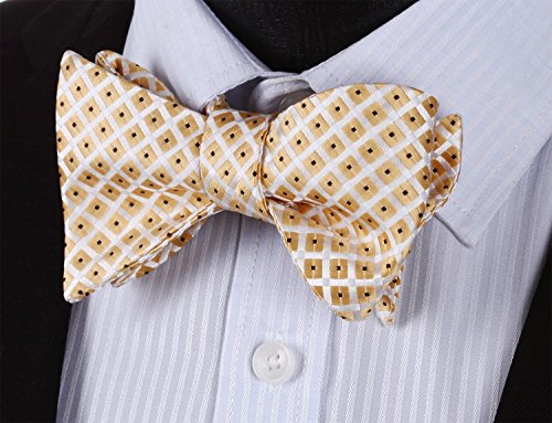 (HISDERN)/Accessories/Ties/DIRECT FROM USA/SetSense Men's Check Jacquard Wedding Party Self Bow Tie Pocket Square Set Gold / Orange / Beige