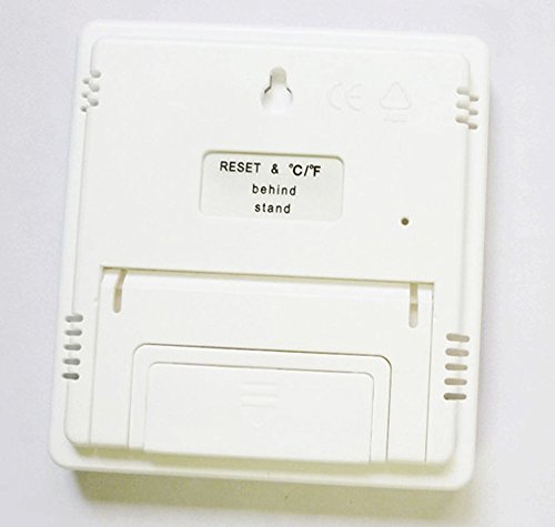 -. Feature : Large LCD display,multi-function. Indoor & outdoor temperature display,indoor humidity display and time display. Memory of MAX&MIN measuring value. 12 hour/24 hour displaying system select-able. Clock,Date,Calendar Function(Month and Date). Pointing function on each hour Everyday alarm function. week display function Low power consumption. High stability&accuracy. Desk-top placing or Wall Hanging / Temperature range:Indoor&Outdoor -50~+70(-58~+158°F) / Humidity range:10%~99% RH , Power supply:1.5V*1 (AAA size) / Device dimension:10.5*9.8*2.4cm / Package Included : 1* Temperature&Humidity Meter battery not included.