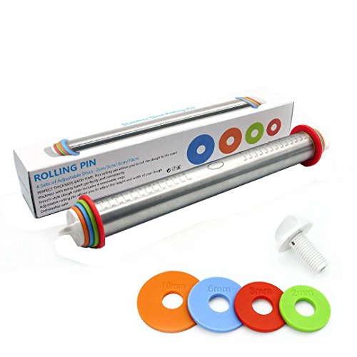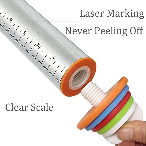 √√PERFECT THICKNESS --- This rolling pin allows you to roll the dough to the exact thickness with every batch perfectly and consistently. There are four sets of adjustable discs (2cm, 3cm, 6cm and 10cm)
