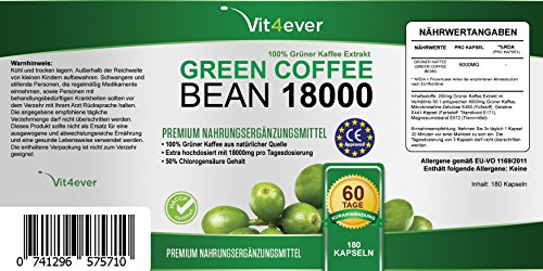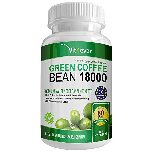 -. Title : Green Coffee Bean 18000 - 18.000mg Tagesdosierung - 50% GCA - 60 Tage Anwendung - Neue extra starke Formel - 180 Kapseln - 100% Grüner Kaffee - Zur Unterstützung während der Diät & Gewichtsreduktion- Premium Qualität - Bekannt aus dem TV