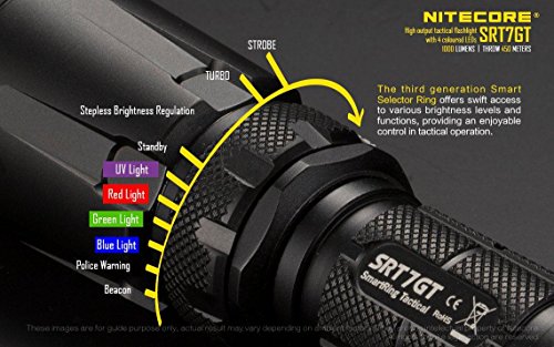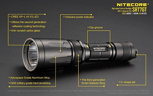 Nitecore SRT7GT Flashlight Smart Select Ring Multi-Colored LEDs - 1000 Lumens -XP-L Hi V3 w/2x FREE Eco-Sensa Batteries