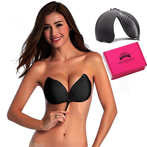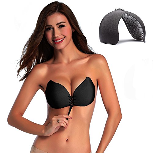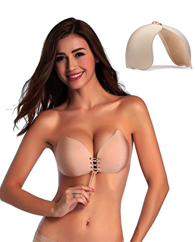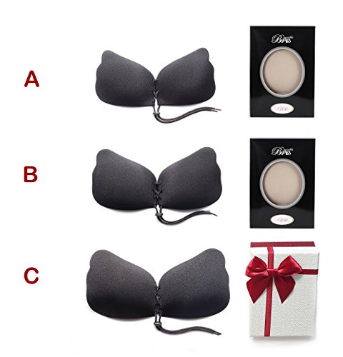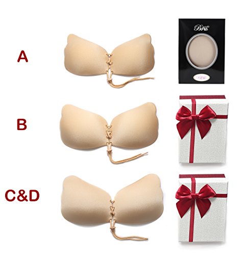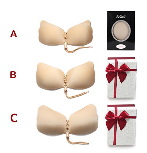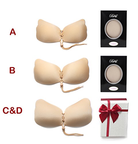 3 reasons for choosing us ★1 Quality-assured. All the adhesive bras(I mean all of them, we check them one by one )must go through quality control and inspection strictly. Such unqualified products that have issues like stains, folds, etc. will be abandoned. ★2 It really works. The reason why some people complain some adhesive bras do not work at all was that they do not sticky enough. But this one is REALLY STICKY. ★3 Ture size. Size C is true for both cup C cup D. If you don't enjoy your new bras, you can return them, 100% full money back guarantee. You have nothing to lose. Click "Add to Cart" and buy now before we run out of stock. Size Chart: A CUP: 65A(30A), 70A(32A), 75A(34A), 65B(30B), 70B(32B), 65C(30C) B CUP: 80A(36A), 75B(34B), 70C(32C), 65D(30D) C CUP: 85A(38A), 80B(36B), 75C(34C), 70D(32D), 65DD(30DD) 85B(38B), 80C(36C), 75D(34D), 70DD(32DD) How to operate: Clean your chest area gently. Avoid oils or fragrances. Flip the cup outward while holding the bra cup by the edges with both hands. Position the cup to your desired breast angle and gently in a circular motion smooth the cup edges firmly to the breast with your fingertips. Make sure to place your nipples on the empty space without the adhesive glue. Pull the straw strings to keep the cup together. How to care for : Simply wash with warm water and mild soap then air dry. When item is dry, the adhesive regenerates itself for next use - make sure surface is clear of debris. Do not recommend for hot temperatures, because sweat may make it slip down. 0 |