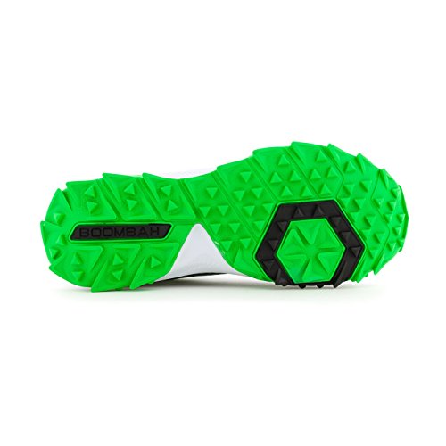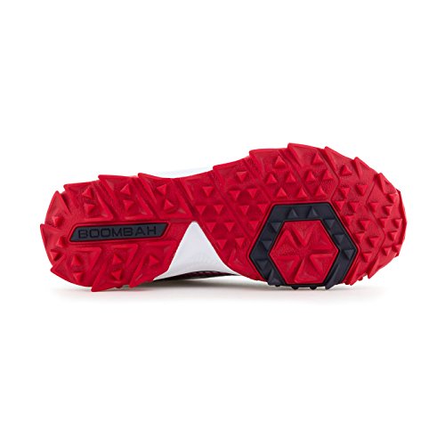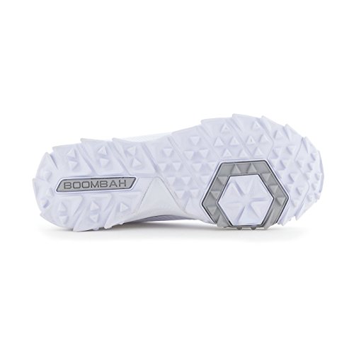 Studio : Boombah Publisher : Boombah Binding : Misc. Product Description Boombah Women's Frenzy Turf Shoes - Multiple Color Options - Multiple Sizes Compete with the most support and traction wearing Frenzy Turfs. Evolved traction used for play on artificial surfaces as well as natural grass. Key features include: - Chevron Blades: Lines the perimeter to penetrate the ground quickly. Heel blades are angled the opposite direction for hard braking - Extended Medial Toecap: Extended medial toecap covers drag zones - Heat Sealed Synthetic Upper: Heat sealed synthetic leather overlays offer a rich texture and feel - Mesh Collar Tongue: Mesh collar and tongue increase breathability - Recoil Midsole Foam: Promotes ventilation and allows heat to escape, keeping your feet cool - Fits true to size. 10 oz