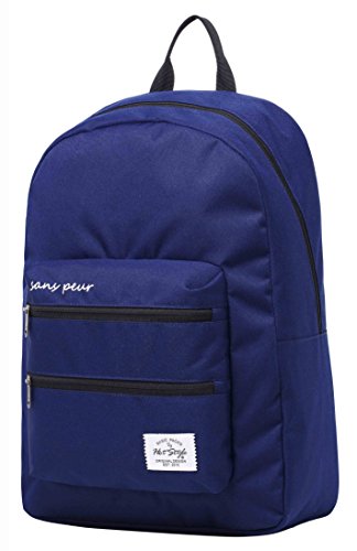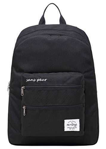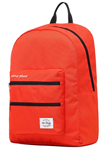 Product Description Made of 600D water resistant polyester, the Sans Peur Backpack features two zippered pocket on the front for your pens, pencils, and calculator, while a rear-end zipper pocket to keep your cell phone handy. The main zippered compartment is large enough for your books, notebooks, binders, changing clothes. Built-in 15.6-inch laptop compartment, and two inner side holders for water bottles, while a small zipper pouch on the back wall to organized small but valuable stuff. With air mesh cushioned S-shape shoulder pad for comfort and support. From school to vacation, this sporty bookbag is a smart and stylish bag to carry your essentials. Just pick the best color to fit your personality, style and wardrobe. Specifications Model: SANS PEUR Size: for 15.6-inch Laptop Max. Capacity: 18 liters / 18 pounds Tall x Width x Depth: 16.5 x 11.8 x 5.3 inches Straps Length: Adjustable from 15.7 to 35.4 inches Strap Drop Length: 7" Min. to 16 Max. Top Handel Drop: 3.0 inches Weight: 0.9 pounds Closure: SBS Zipper Liner Color: Black Material: 600D Water Water Resistant Polyester Warranty: 12-month warranty against material and quality defects. HotStyle(R) Packs is the exclusive merchant for original HotStyle branded bags on the Amazon site.