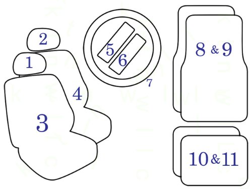 -. Feature : Gift set includes 2 front bucket seat covers, 2 front head rest covers, 2 front floor mats, 2 rear floor mats, 1 steering wheel cover, 2 seat belt shoulder pads / Fun and fuzzy zebra pattern fabric / Wheel cover fits most steering wheels 14.5 to 15.5 inches / 2 front mats measuring 26 x 17" / 2 rear mats measuring 13 x 17"
