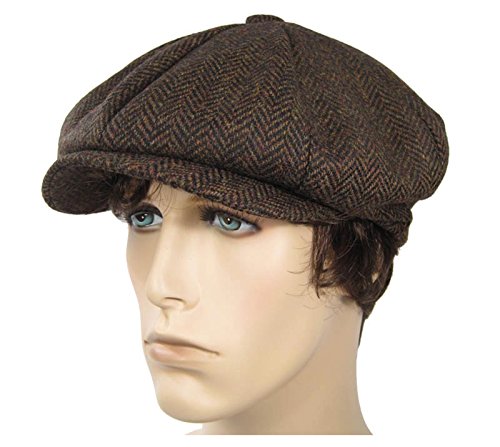 -. Brand : Largemouth -. Color : Brown -. Department : mens -. Feature : Made in the U.S.A. / 100% Wool / Great for men or women! / Quality Hat / Fully lined on the inside. Single snap in the front. -. Model : Newsboy Herring Brown NY XL (5 oz.) -. PackageQuantity : 1 -. ProductGroup : Apparel -. ProductTypeName : ADULT_COSTUME -. Size : X-Large - 23 in. / 60 cm. -. Title : USA Made Unisex 8 Panel Newsboy Tweed Herringbone Wool Hat Brown (X-Large)