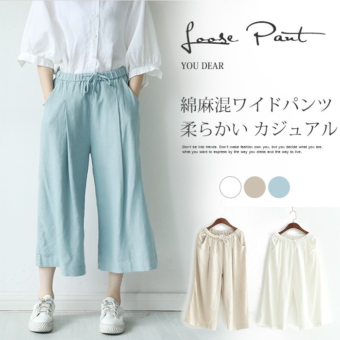 ★生産国:中国★素材:亜麻混生地の厚さ:普通ウエストゴム:あり★カラー:白、ブルー、ベージュ 写真参考※お客様ご使用のPC環境により商品画像のカラーが多少異なる場合があります。仕入時期により多少デザインなど異なる場合があります。ご了承ください。★サイズ(cm):F:ウエスト66-78 着丈約76 ヒップ110 ※サイズは人の手によって測っているため、1-3cmの誤差がある場合がございます。予めご了承くださいませ。