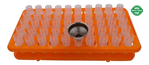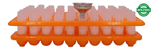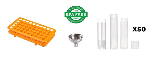 - DIY LIP BALM KIT - EASY WAY TO FILL LIP BALM CONTAINERS: NO Tipping Over NO Spilling! Filling supplies for homemade, personalized, organic lip balm for chapped lips - Orange Plastic Test Tube Rack - holds 50 tubes - ABS plus Silicone Rubber Material for tubes of 10mm to 18mm in diameter, 50 holes (phlebotomy tube holder). Rack holds tubes securely for a snug, wobble-free fit - perfect for lip balm making - measures 10” x 5” x 2” inches high. Tubes easily snap in & snap out.