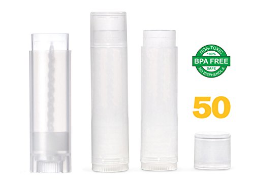 - 50 CLEAR QUALITY LIP BALM CONTAINERS: These empty clear lip balm tubes feature a push wheel mechanism/screw-drive dispenser, to effortlessly push lip balm to the top for quick and easy application to lips, just like name brand lip balms! BPA Free Lip Balm Empty Tubes - standard-size tube holds .15 OZ of lip balm. Size of tube: 60mm or 2 1/4 inches tall without cap; 65mm or 2 1/2 inches tall with cap; tube opening is 10mm. These balm containers are perfect for making lip balm!