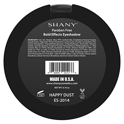 From the creators of the masterpiece 7 layer all-in-one makeup set, SHANY brings you their brand new bold eye shadow collection. Our bold shades have strongest pigmentation of any of our eye shadows. These eye shadows glide on like colorful velvet on your lids. They are richly pigmented, true to color, and hypoallergenic. This formulation is Paraben free and is perfect for all skin tones and types. Our dual purpose wet or dry eye shadow can achieve countless long-lasting looks for everyday to the runway. These easy to blend shades are stylishly packaged in a slim black compact. To increase the lasting power of your gorgeous look, pair it with the new SHANY Paraben-free eye primer. Since the product is Paraben free, you shall use it within 12 months. Made in USA.Feature