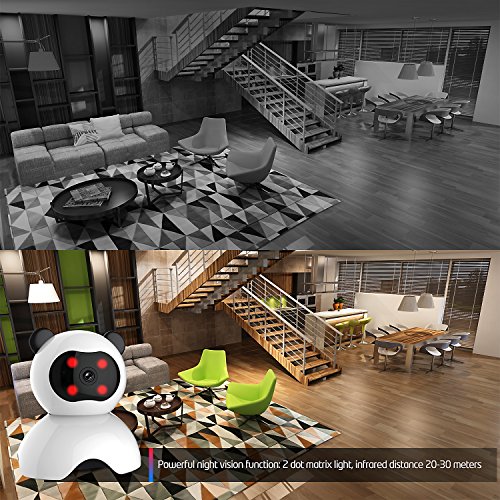 -. Feature : ✔ MONITOR ANYWHERE& ANYTIME: Enjoy Monitoring with Horizontal 355° and Vertical 75°rotating and Full HD videos and detailed panoramic snapshots at wide area coverage. The speed of the Surveillance Camera reaches up to 25/30 Frames / Sec. You can control the Wireless Security Camera which adopts Granville Technology& P2P Penetration Technology anywhere& anytime monitor from your Smartphone, Tablet or PC / ✔ BE CONNECTED MORE EASILY: Besides traditional connection methods, you can also update your App to the latest version that includes AP CONNECTION which can convert your IP Camera into Wi-Fi. It means that there is no need to worry about whether we can connect the camera with our phones or PC any more if the network is good or not / ✔LIVE COMMUNICATION You can talk with your family members while you're watching them or deter the intruders by talking to them to make the most of the camera's clear 2-way audio function which lets you enjoy 720P real-time image transmission, communication with the built-in microphone and speakers. THE VOLUME OF THE IP CAMERA CANNOT BE ADJUSTED / ✔ALARM SETTING: Just setup our Wi-Fi Surveillance Camera, connect through the app with your Wi-Fi or even without Wi-Fi and you can view and record at any time. The Camera will send you REAL-TIME warning notification to your mobile phone and an Email to you while detecting movement in Motion Detection area, and ensure Your Security Anytime. The camera video can only be viewed by those people whose Smartphone are connected to IP Camera. / ✔ WARRANTY: For 12 Months after The Date of Purchase, We Take Care of All Quality-related Issues with a REPLACEMENT. Reminder: Be Sure to Use Your Product as Directed