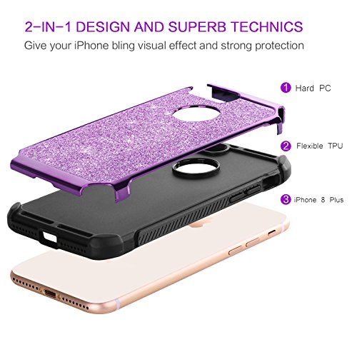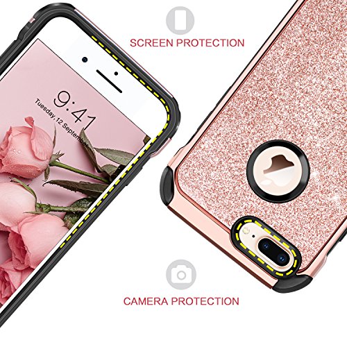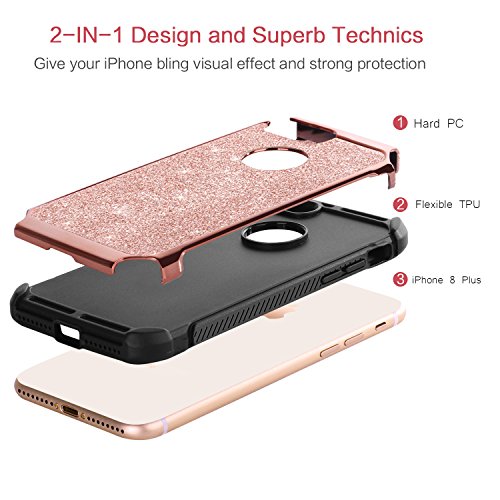 -. Title : BENTOBEN iPhone 8 Plus Case, Shockproof Luxury Sleek Glitter Sparkly Bling Cute Shiny 2 in 1 Soft TPU Bumper Hybrid Hard PC with PU Faux Leather Protective Phone Cover for Girls & Women