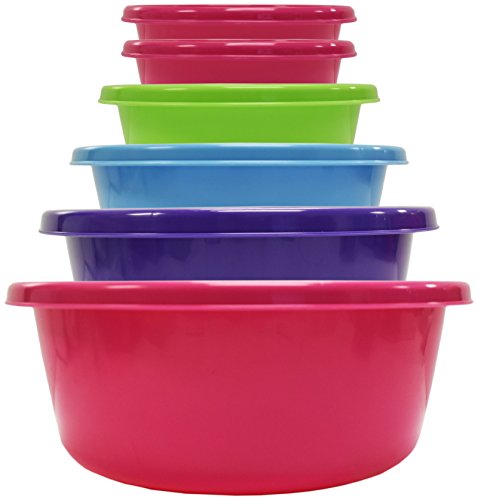 Set of 6 Pieces Click Home Design Nesting Mixing Bowls! 6 Sizes - 4 Bright and Beautiful Colors - Sturdy Mixing Bowls